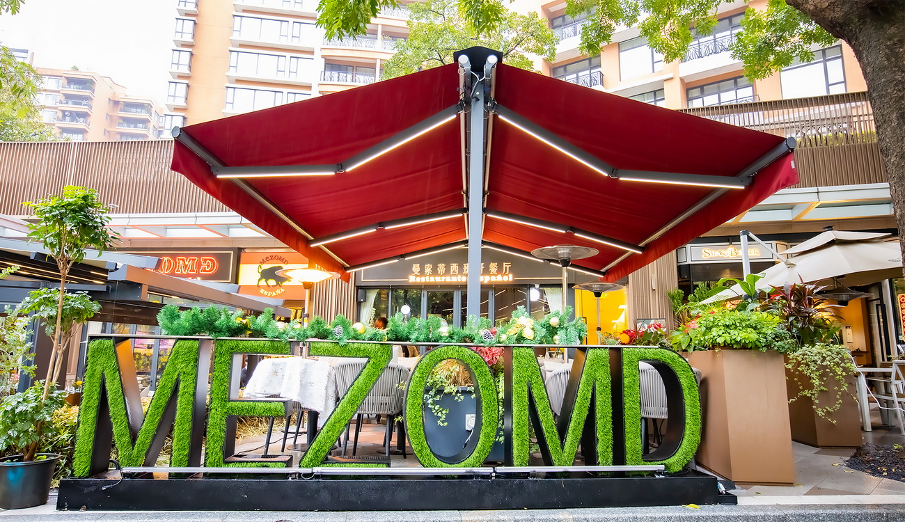 专为大跨度需求设计的曲臂遮阳篷