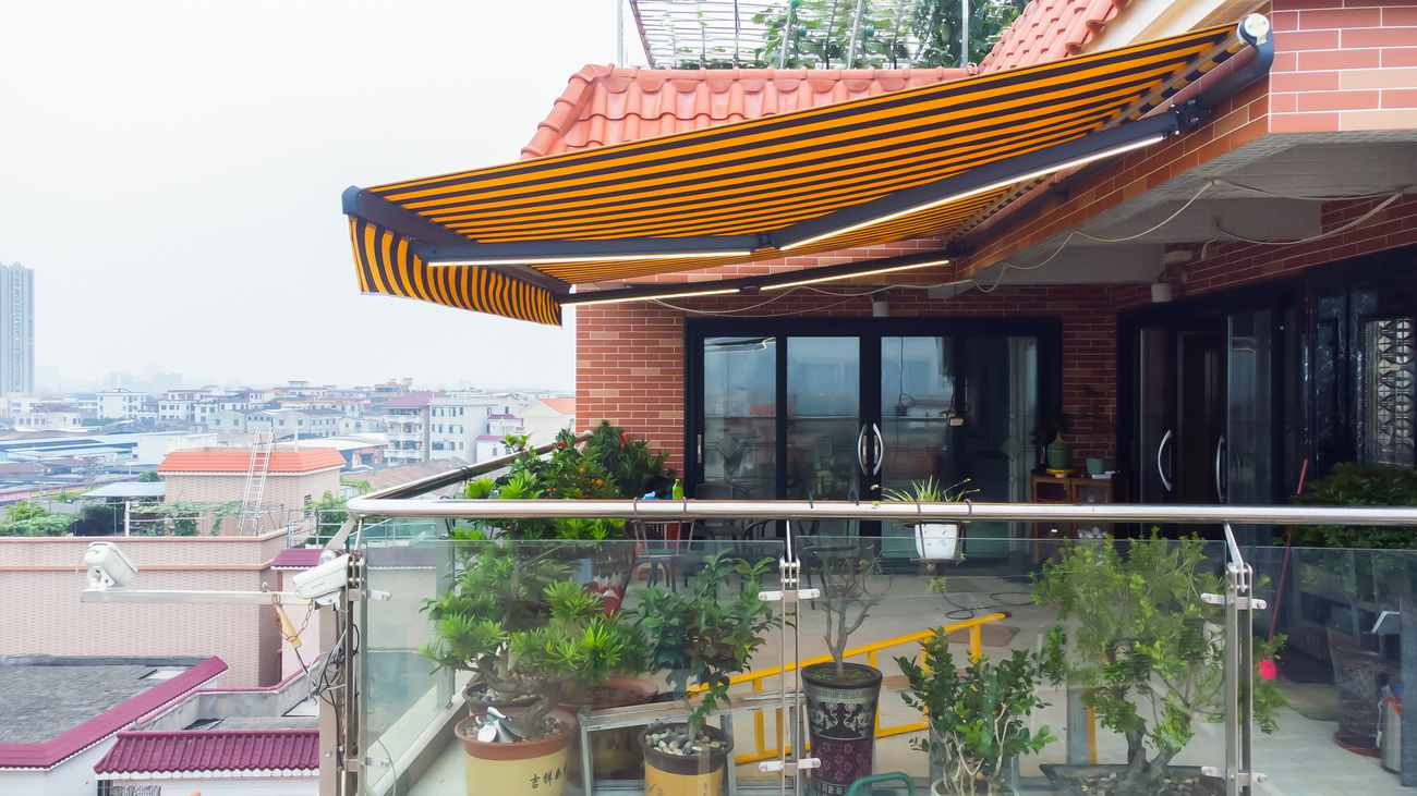 全罩亮式设计的曲臂遮阳篷